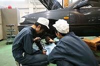 自動車をエンジン、シャシ、電装の分野に分け、その専門的な知識や技術、技能を 身につけるために実際の自動車や各種部品の点検、分解、組立、調整などを最新の設備機器を使用して行います。