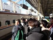 発表した後、座席後方の展示ブースに集まり、実物を見ながら