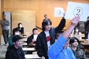 在校生と一緒に学校に関するクイズ大会をした後に、