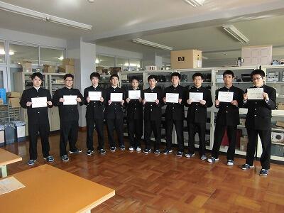 第一種電気工事士試験の結果が発表され、合格証書が届きました。難易度の高い資格試験で、受験希望者は夏休みから学習に取り組んできました。令和6年度は電気科の2・3年生あわせて9名が合格しました。渋工電気科では毎年県内トップクラスの合格者を出しています。