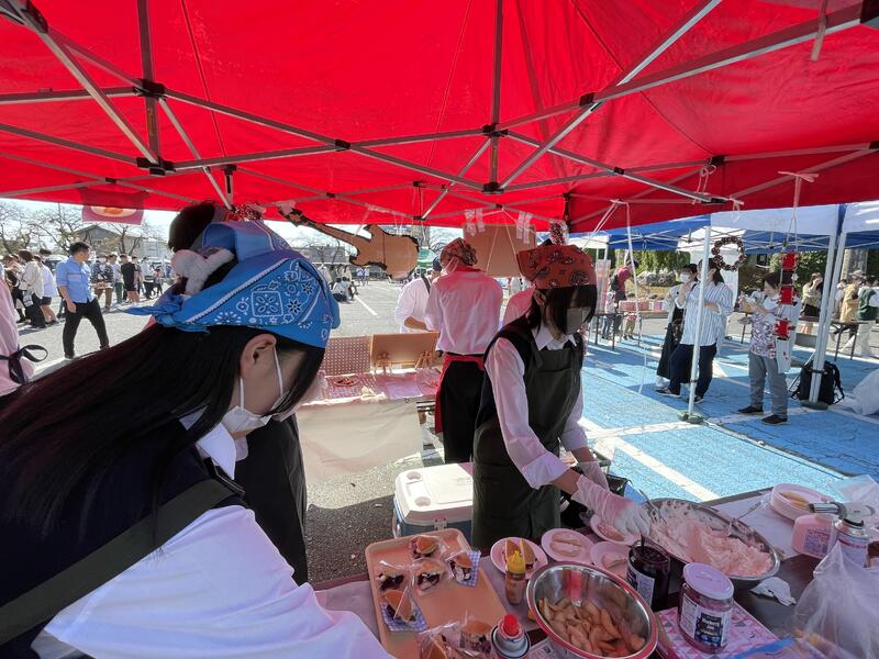 当日は、ちょうど桜の時期と重なる好天に恵まれ、たくさんの来客がありました。生徒たちは地元の方々とやりとりをする機会をいただき、校内ではできない経験を積むことができました。