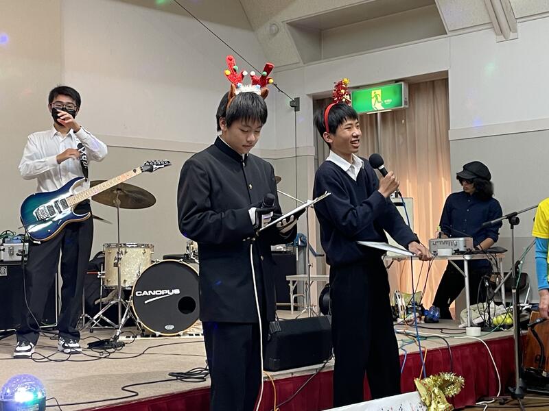 ステージでは、クリスマスをイメージしたかぶり物をつけて、いつもとは違った雰囲気のなか、楽しく演奏できました。
