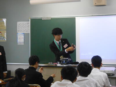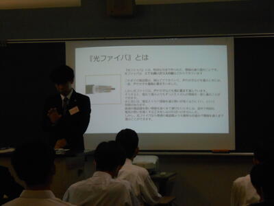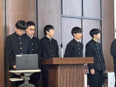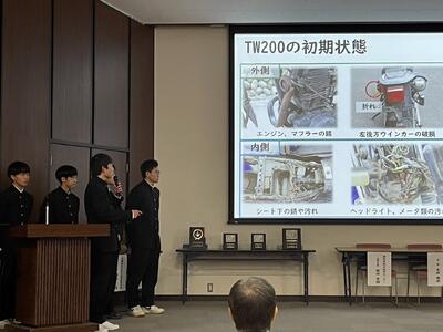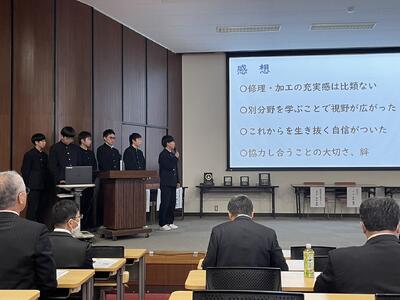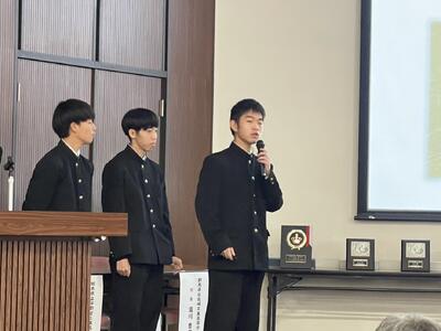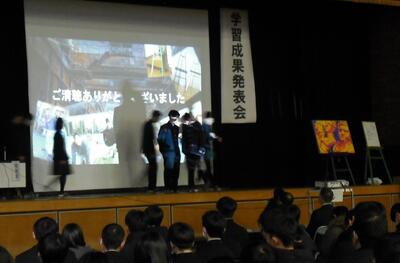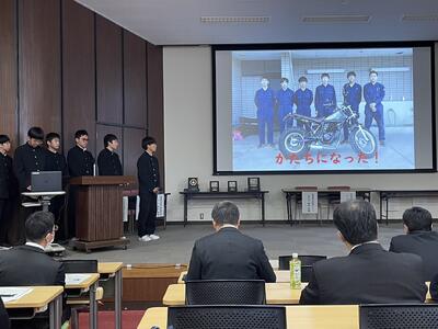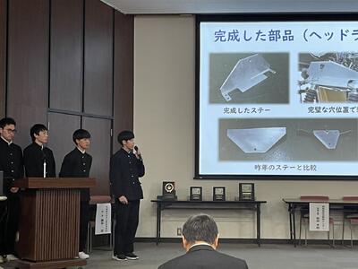 各科代表の3年生が課題研究で取り組んだ製作等についての発表を行ってくれました。