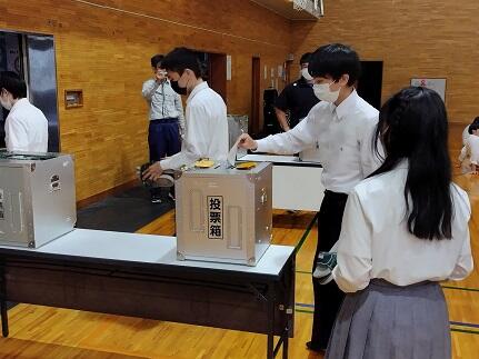 11人の立候補者が演説し、それぞれ渋工をより良くするために公約をしました。その後、生徒一人一人がどの候補を選ぶか考え投票しました。