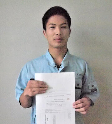 | 渋工電気科3年生の川口渚朝君(渋川中出身)が8月に実施された第三種電気主任技術者試験に合格しました。この資格は電圧5万ボルト未満の事業用電気工作物の主任技術者になることができ、社会からとても必要とされている資格です。合格率は10%程度と非常に難易度が高く、高校生で合格することは大変難しい資格です。渋工では数十年ぶりの合格で、群馬県内でも高校生の合格者はしばらく出ていませんでした。試験科目が4科目あり、多くの合格者は2~3科目ずつの科目合格を積み重ねたうえで合格するのですが、川口君は初めての受験で4科目全て合格しました。川口君には勉強方法などの経験を伝えてもらい、来年度以降も後輩達が続いていけることを願っています。 |