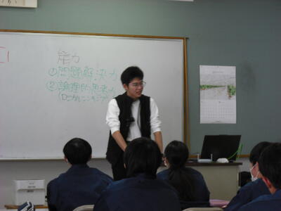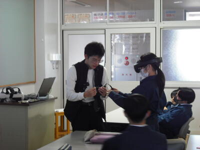 12月2日に情報システム科卒業生の愛敬遥生さんを招いて情報システム科2年生に向けて仮想現実空間についての講演をしていただきました。