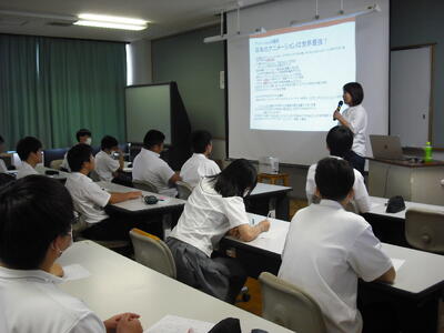 日本のアニメーションのなりたちから海外展開につながっていく歴史を経験者の立場から講義いただき、大変興味深く拝聴することができました。本校で学習するコンピュータプログラム等が、昨今のアニメーションで使用されるCGといった作画につながれば将来の進路選択が広がっていくと思います。大変ありがとうございました。