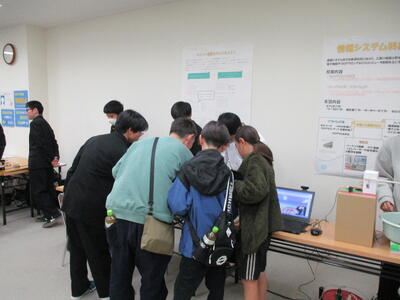 実習で制作した作品や、専門的な機材の展示を通じ、普通科の高校では味わえない「技術を習得する楽しさ」を中学生たちに熱心に伝えていました。