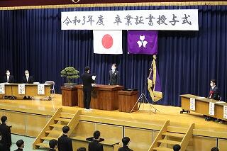 新型コロナウィルス感染症の拡大防止のため、分散登校や学校行事の制限から我慢を学んだ卒業生たちが、学び舎を巣立ちました。たくさんの困難を乗り越えた末の卒業、その重みをかみしめ未来へ大きく羽ばたいてもらいたいと思います。