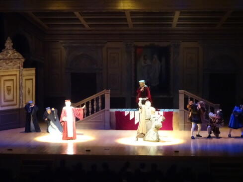 令和5年12月21日(木)渋川市民会館にて、劇団芸優座による「ベニスの商人」を鑑賞しました。役者さんの本物の演技を、生徒は全身で味わうことができました。視聴覚委員長による謝辞も感動した気持ちをしっかりと伝えることができました。次回演劇教室は3年後の予定、来年は文化祭です。
