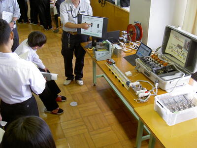 5月28日(水) 電気科3年生を対象に東日本旅客鉄道株式会社 高崎支社 高崎信号通信設備技術センターの方々による出前授業を実施しました。当日は8名の先生を派遣していただき、鉄道業界の電気の現場で活躍する方々から実践的な技術を教えていただきました。渋川工業高校の卒業生も講師として参加していただき、生徒達も熱心に取り組んでいました。また、学校には無い本物の設備なども体験することができ、楽しく勉強することができました。