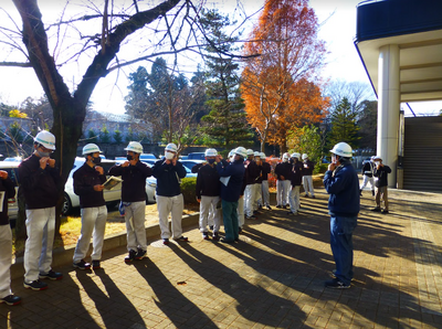 [学校にて実習技とヘルメットを着用し、現場へ移動]