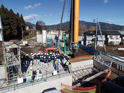 現在、渋川工業高校周辺で国道17号渋川西バイパスの工事が行われています。道路工事は土木の分野になりますが、現場で使われる様々な建設機械や建設資材は機械科の学習内容とも関連し、さらに安全管理については工業全般に関わることから、工事を管轄する国土交通省関東地方整備局高崎河川国道事務所様にお願いし、見学が実現しました。